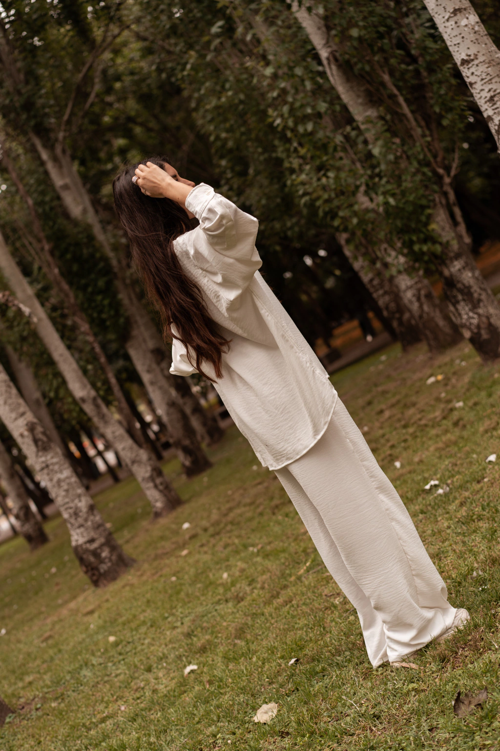 Un pantalón blanco, cómodo y sin complicaciones. El Pantalón Paloma está confeccionado en tela Ibiza, una tela liviana y suave que no se arruga y acompaña el movimiento. Tiene el mismo corte relajado de siempre, con elástico en la cintura trasera y pierna recta que se adapta a cualquier ocasión.