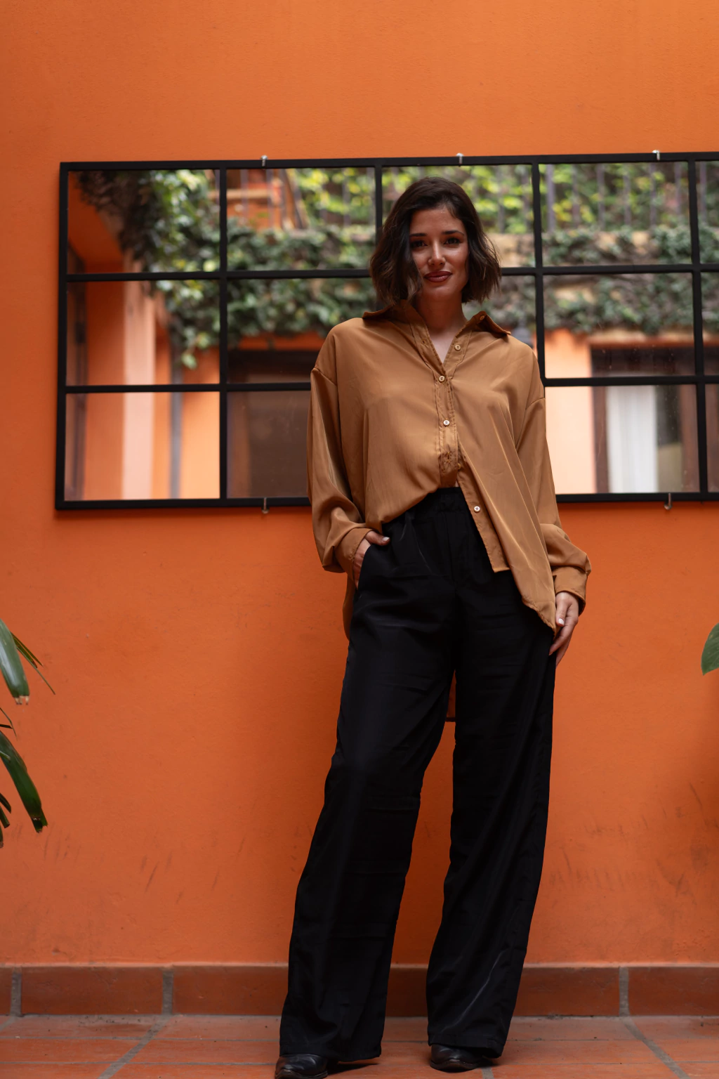 Liviana como el aire y con un toque de brillo que enamora. La Camisa Mágica Toffee está hecha en una sedita satinada que se siente deliciosa al tacto. Tiene una caída suave y un brillo sutil que aparece cuando le da la luz… perfecta para levantar cualquier look sin esfuerzo.